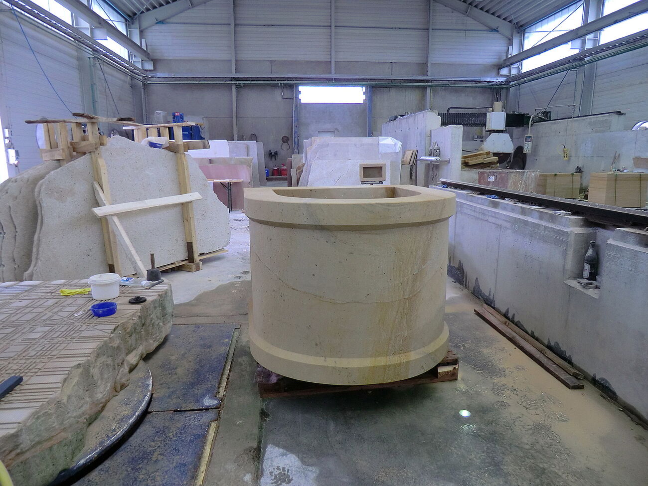 Brunnenbecken und Brunnenstehlen fertigen wir in unserer Werkstatt auch nach Ihren Wünschen in Kalkstein, Travertin und Sandstein an. Dabei können alle üblichen Formen und steinmetzmäßigen Oberflächenbearbeitungen ausgeführt werden. Wir beraten Sie zu Ihrem Projekt.
