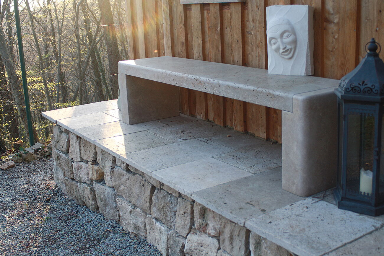 Als Spezialisten für individuelle Natursteinmöbel bieten wir gern Tische, Bänke und andere Sitzmöbel für den Außenbereich an. Dabei sind auch Kombinationen mit Holz möglich. Das Holz ist bereits vorhanden? - Wir liefern die Natursteinbank-Seitenteile dazu. Unsere Ausstellung lässt für Ihre Kreativität entsprechenden Raum.