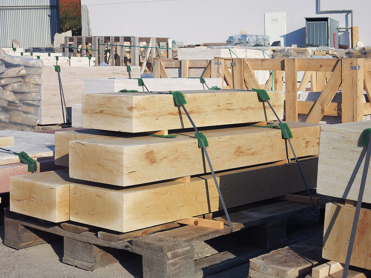 Standardgrößen wie L/B/H 100/35/15 cm sind in Travertin, Granit und Quarzit meist vorrätig.