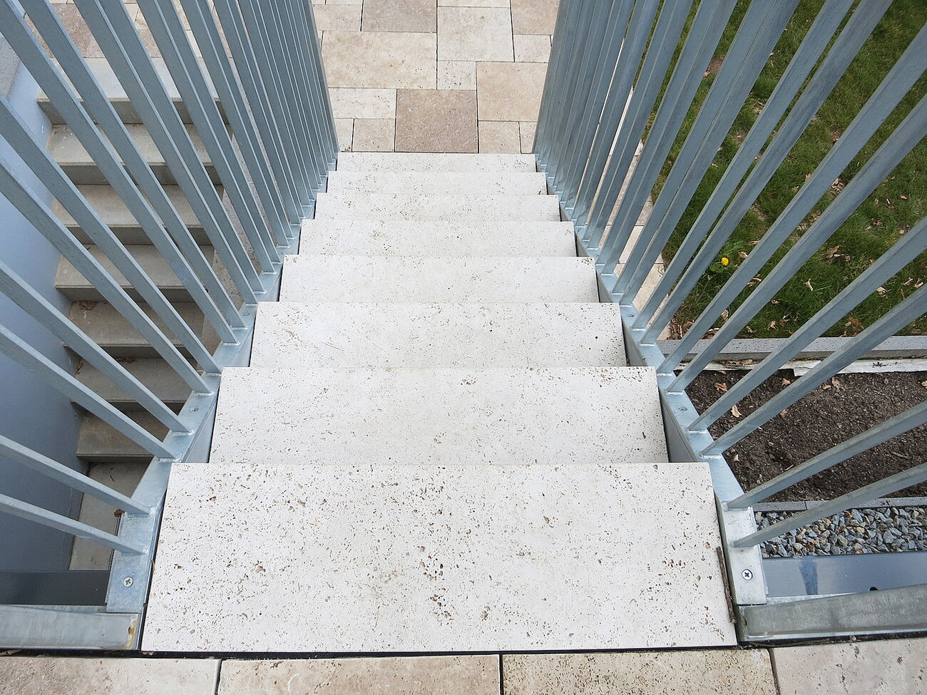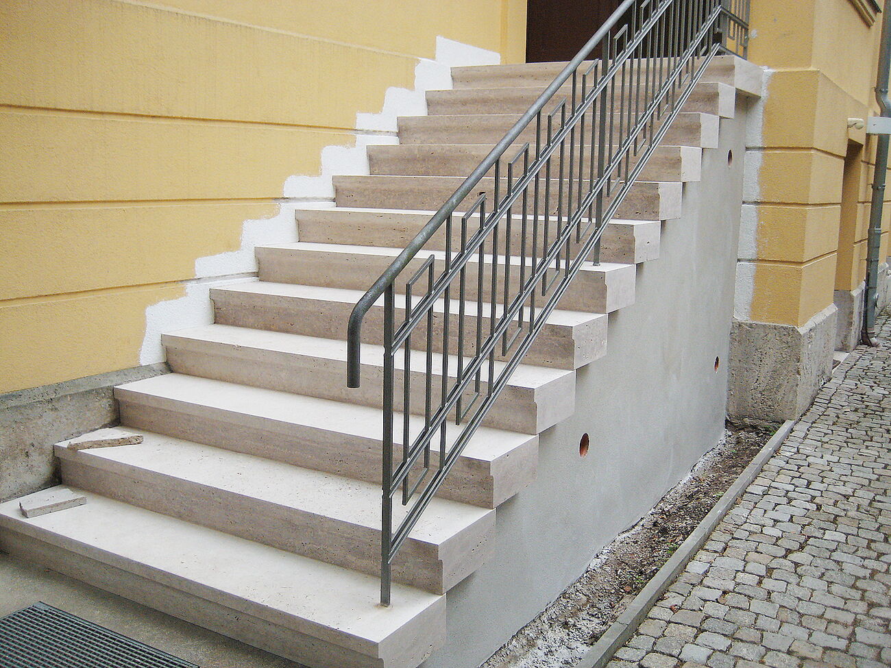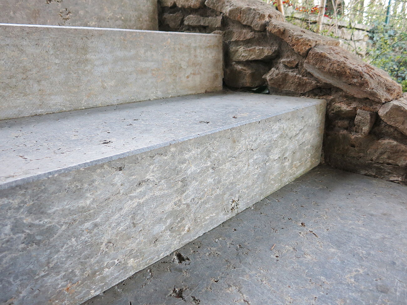 Treppenstufen können massiv als Blockstufen, Tritt- und Setzstufen oder Trittstufen ausgeführt werden. Zur Verwendung können die unter Materialien aufgeführten Natursteine kommen. Die Treppenanlagen werden nach Ihren Maßangaben und auf Wunsch mit entsprechenden Oberflächen und Profilierungen von unseren Steinmetzen gefertigt. Dabei sind gerade und radiale Treppenanlagen möglich.