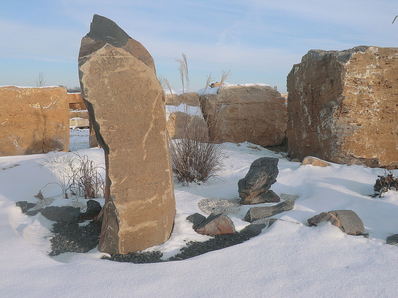 Findlinge zur Gestaltung von Gärten und Freiflächen sind in Größen ab 20 cm bis 150 cm jederzeit verfügbar. Sie können aus verschiedensten Materialien und Farben wählen. Travertin-Solitäre, Kalkstein-Gestaltungssteine, Eiszeitfindlinge, Basaltsäulen, bizarre Schieferfelsen und viele andere sind in der Ausstellung in Kromsdorf zu finden. Gern arbeiten wir an Ihrem Stein eine Standfläche oder bringen eine Bohrung an einem geplanten Quellstein ein.